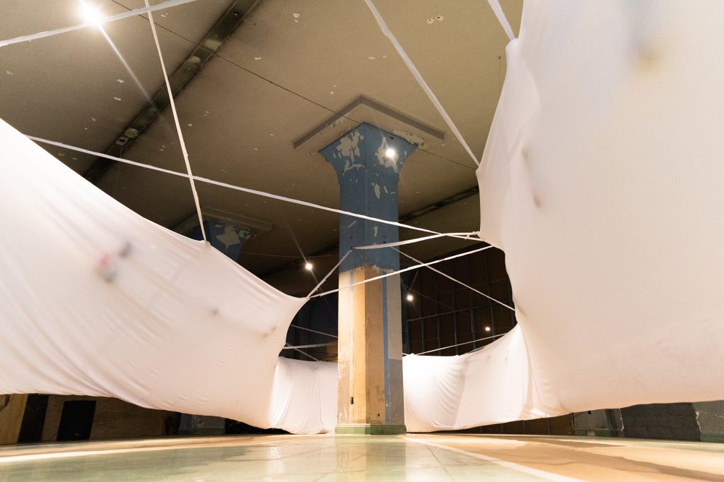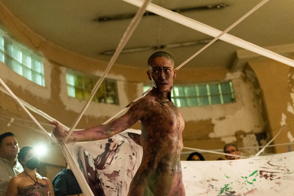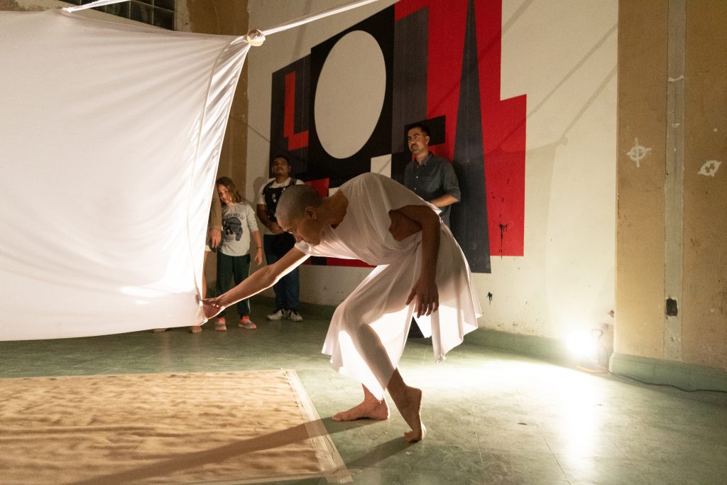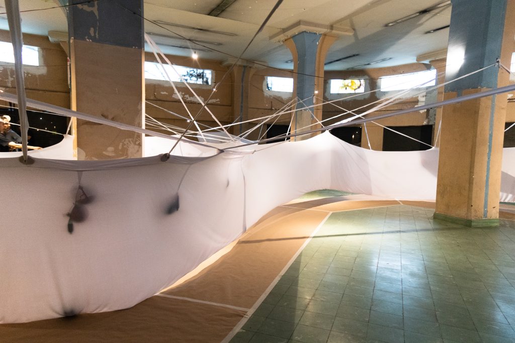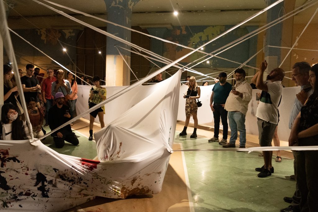 Acompañada por música en vivo improvisada, los gestos y movimientos dejan huellas cromáticas que funcionan como un archivo emocional. El túnel se convierte en un espacio de tránsito e inscripción, donde el tiempo, el sonido y la emoción encarnada convergen, permitiendo que la transformación ocurra a través del propio acto de atravesarlo.